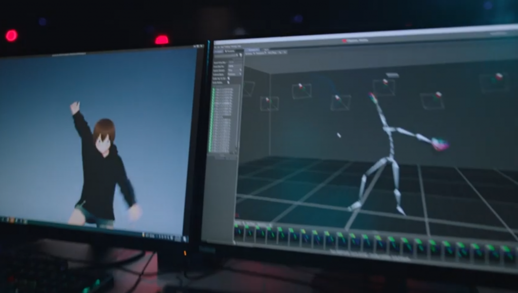この大学は、社会だ。CONNECT.のCM撮影にモーションキャプチャースタジオ、モニター画面の準備、セットアップなどを協力しました。