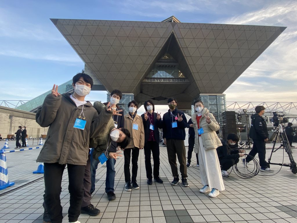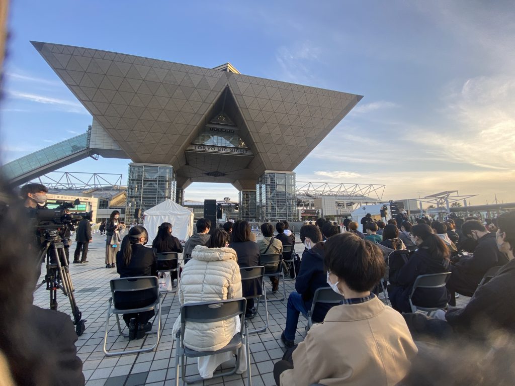 ビッグサイトの建物にプロジェクションマッピングで作品上映