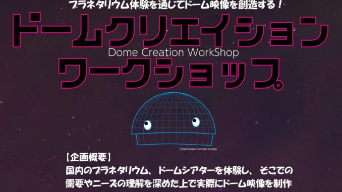 『ドームクリエーションワークショップ』始まりました! 2025年9月15日 wpmaster イベント, インフォメーション 0 ドームクリエイションワークショップ2025ポスター 『ドームクリエーションワークショップ』が始まりました。9月から2月までのロングランワークショップです。 プラネタリウムでドーム映像を鑑賞し、レクチャーを受け、実際に映像制作に参加します。 www.immcon-society.net「ドームクリエイションワークショップ」を開講。シアターの体験、フィールドワー...https://www.immcon-society.net/?p=1800 共有: クリックして X で共有 (新しいウィンドウで開きます) X Facebook で共有するにはクリックしてください (新しいウィンドウで開きます) Facebook 関連記事: 関連記事はありません。