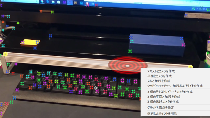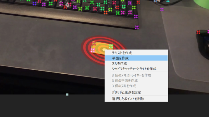 任意の3点を選ぶと的のようなものが出てきます。ここに「テキスト」や「平面」を作っていきます。